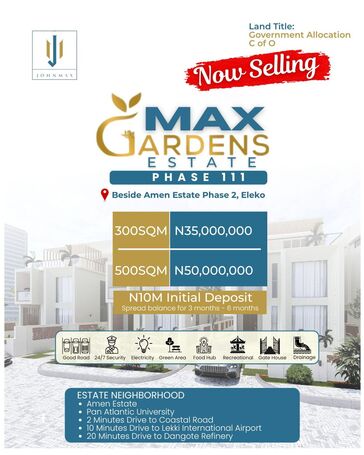 Located right next to the prestigious Amen Estate Phase 2, Max Gardens boasts Government Allocation/C of O—offering you peace of mind and security for ...
